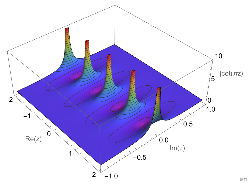 先找一个函数使得每个整数都是它的极点。我们发现 $\cot(\pi z)$ 是一个不错的选择,并计算它的留数: